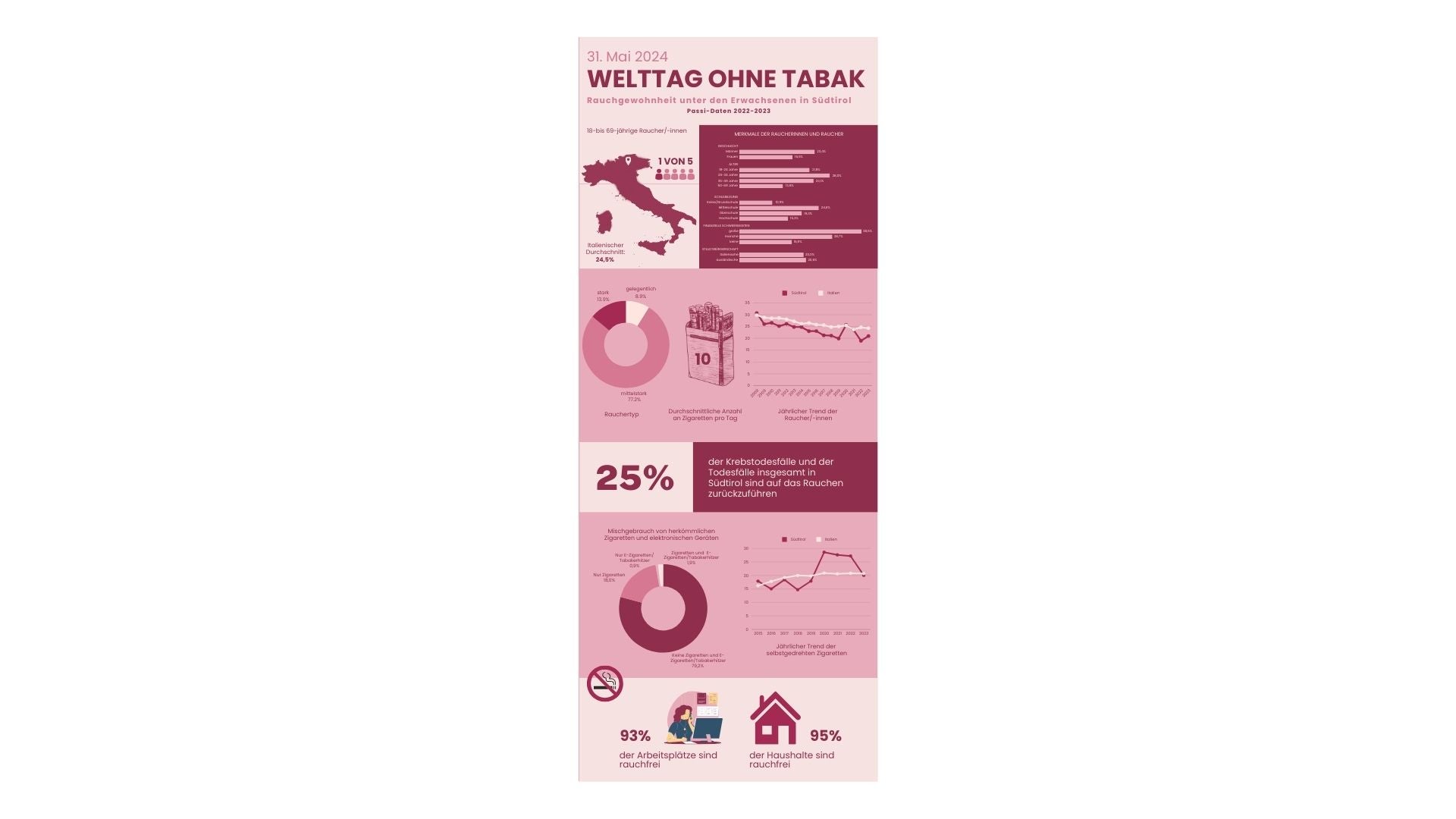 31. Mai 2024 - Welttag ohne Tabak: Rauchgewohnheit unter den Erwachsenen in Südtirol